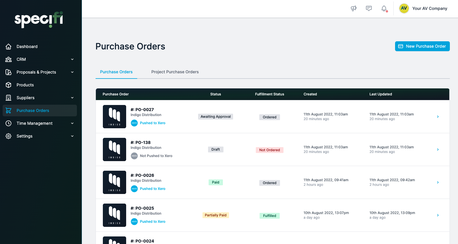 If you have set up Xero integration, all of the status stages listed previously: Mark as Approved, Mark as billed, Approve Bill and Add Payment are pushed into Xero.